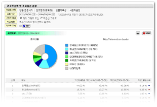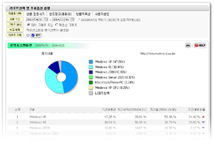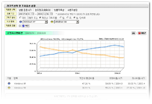 웹브라우저 종류 및 버젼, 운영시스템 종류 및 버젼, 화면해상도와 색상, 자바사용 여부의 비율과 각 추세비교 리포트가 제공됩니다.