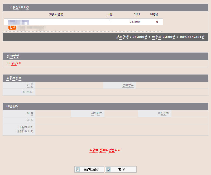 | 안녕하세요. 로거™운영자입니다. 최근 MakeShop 임대형호스팅을 이용하시는 고객님의 사이트에서 매출액이 억대 매출액이 수집되는 이상 현상이 지난주부터 간간히 발생하고 있습니다. 본 내용의 원인 파악을 위해 모니터링하여 확인된 내용을 고객님께 공유드리오니, 참고하시기 바랍니다. < 메이크샵에서 결제 실패 시 > 이를 처리해 드리기 위해 주문 실패의 경우, 주문금액 및 기타정보를 수집하지 않도록 처리할 예정이오니, 참고해 주시기 바랍니다. 감사합니다. |