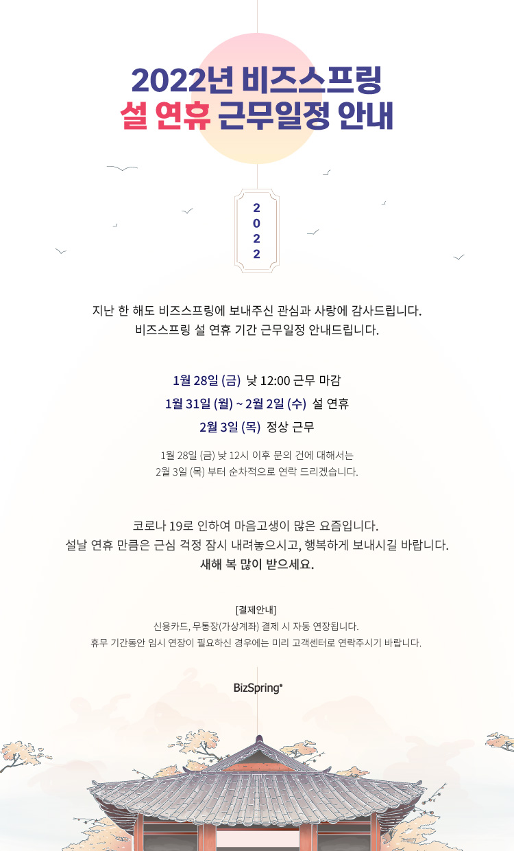 [공지] 2022년 설 연휴 고객센터 단축운영(1/28, ~12:00) 및 휴무 안내