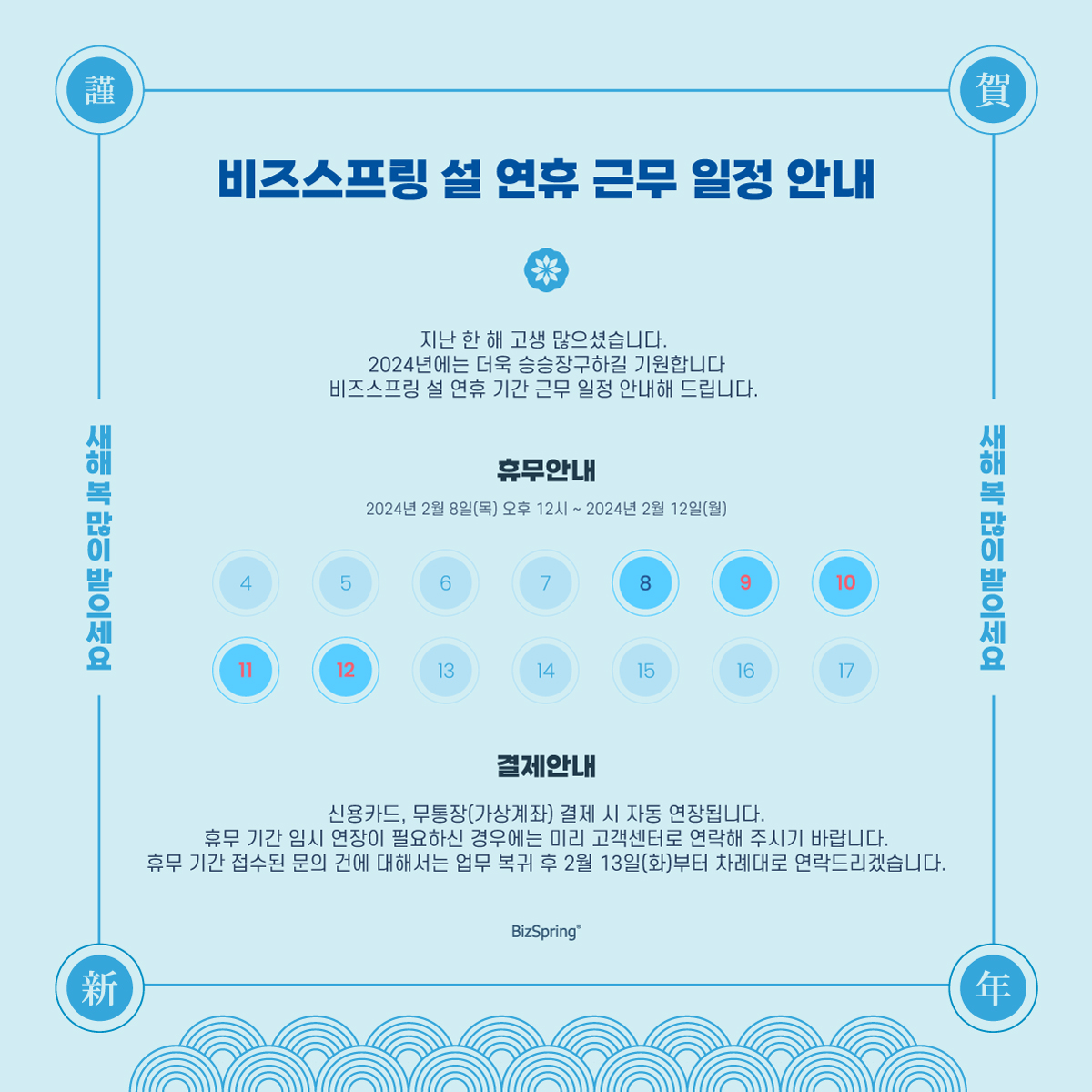 [공지] 2024년 설 연휴 고객센터 휴무 안내