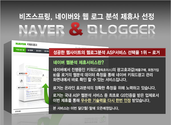 비즈스프링, 네이버와 웹로그 분석 제휴사로 선정되었습니다.