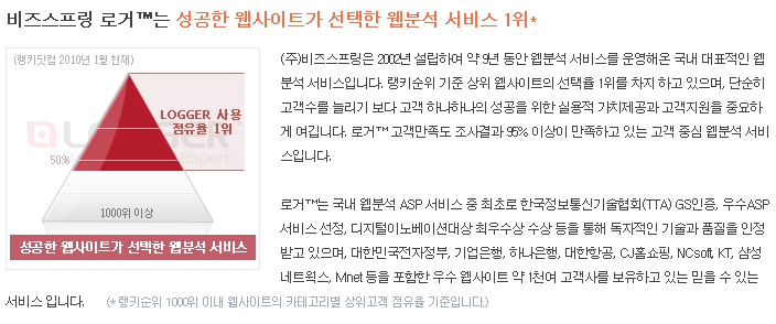 웹로그분석 서비스를 통해 광고의 전환율을 측정함으로써 광고의 비용대비 효과를 정확히 알 수 있습니다.