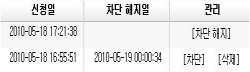 해지 요청을 신청한 ID가 리스트에 보여집니다. Beta 버전에는 해지 요청이 이메일을 통해 이루어졌으나 정식 버전에서는 해지 요청이 이메일과 더불어 리스트에 표시됨으로 편리하게 차단 해지관리가 편리해졌습니다. |