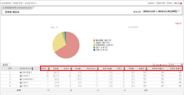 모바일 web/app 분석 서비스: 모바일환경 > 휴대폰 환경 > 모바일 제조사